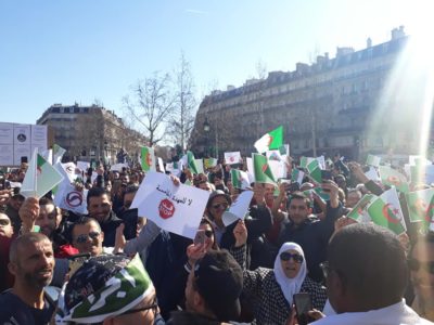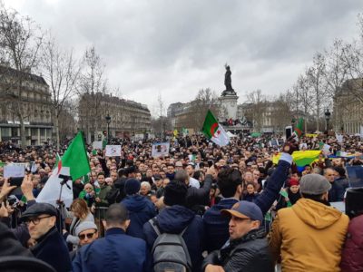 « Ce 24 février à 14h une foule immense surgit sur la place de la République. Cet instant restera à jamais un moment mémorable. Il sera au-dessus de toutes nos espérances tant la place de Paris République était pleine de monde. Si le 17 février a réuni au moins 3000 personnes, ce sont près de 10 000 personnes qui répondront à l’appel du 24 février. Ce jour-là et à cet instant précis, on le voit dans les regards qu’on se lance entre nous, que nous prenons conscience du fait que la diaspora venait de marquer de manière grandiose sa communion avec les revendications populaires exprimées dans toute l’Algérie. »
