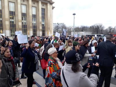 Halima Saidani : Après le rassemblement du 3 mars, des responsables d’organisations proposent de marquer la date du 8 mars, qui tombe un vendredi, par un rassemblement sur le parvis du Trocadéro. Rapidement, les femmes des organisations se lancent dans les préparatifs et le jour J fut une fête en l’honneur de la femme Algérienne engagée dans le Hirak. ça sera d’ailleurs le 1er vendredi depuis le début du Hirak ou la diaspora algérienne allait manifester à l’unisson avec nos compatriotes en Algérie.